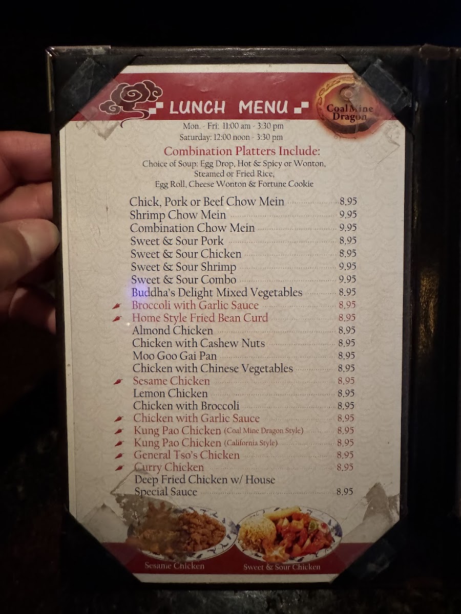 Whether you're dining in or ordering takeout, Coal Mine Dragon promises a satisfying and delectable experience every time.